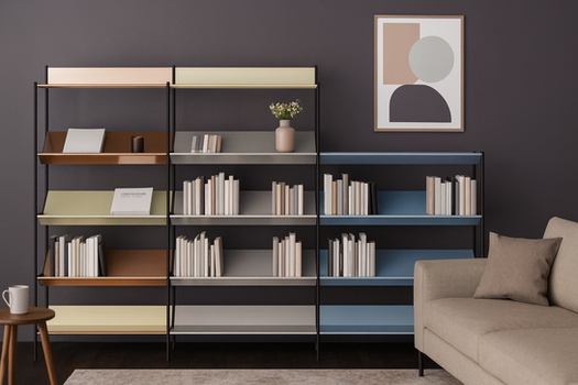 Die Stahlkonstruktion und die beidseitig nutzbaren Fachböden sind in verschiedenen Farben erhältlich und setzen damit in jedem Raum einen Akzent der Extraklasse.